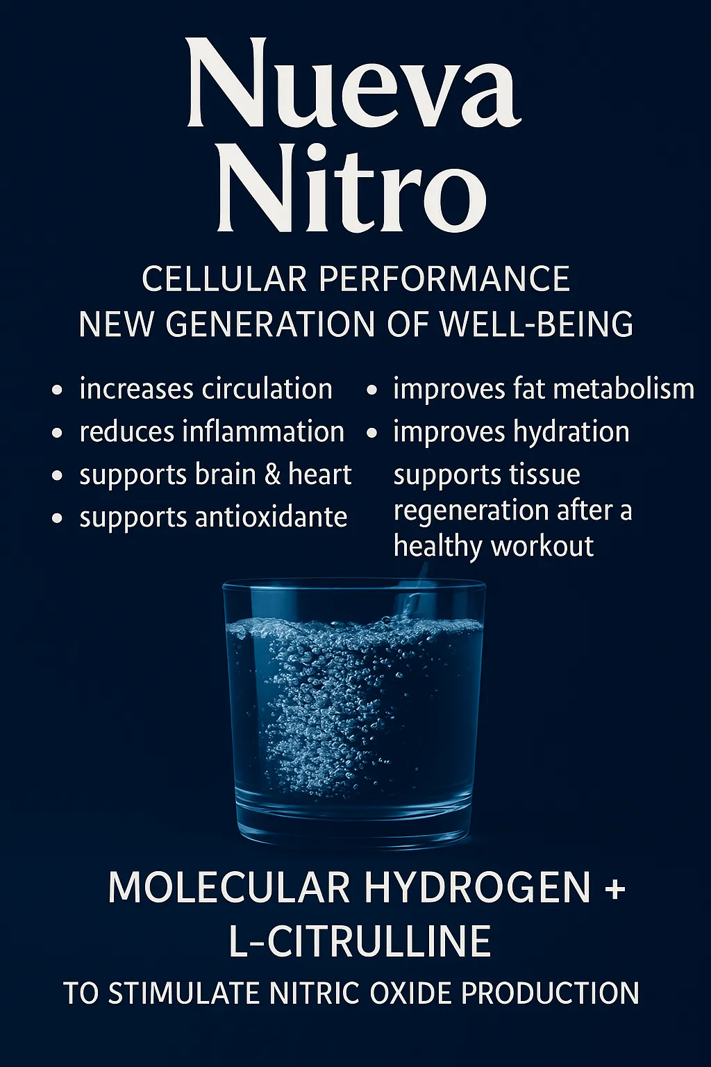 Nueva Nitro = Hydrogen Water + L-Citrulline → Nitric Oxide in Abundance